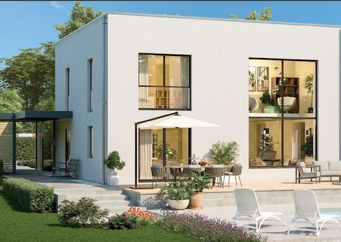 Für den Bau Ihrer Villa haben Sie die Wahl zwischen vier verschiedenen Ausbaustufen. Mit der Ausbaustufe 4 - Schlüsselfertig - erhalten Sie Ihr Traumhaus komplett bezugsfertig inklusive Wand- und Bodenbelägen sowie Zimmertüren ab einem Preis von 514.371 EUR. Diese Option ermöglicht es Ihnen, alles aus einer Hand zu bekommen und die Zeitvorteile unserer modernen Bauweise optimal zu nutzen. Bei STREIF profitieren Sie von individueller Bauberatung vor Ort: Unsere Experten nehmen sich Zeit für Ihre Wünsche und zeigen Ihnen vielfältige Gestaltungsmöglichkeiten auf. Egal ob mit oder ohne Keller, Flachdach oder Walmdach - wir passen uns Ihren Vorstellungen an. Außerdem können Sie Eigenleistungen erbringen und dadurch bares Geld sparen.