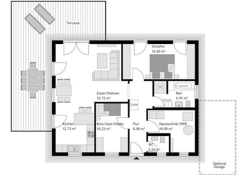Wohlfühlen auf einer Ebene - kompakter Bungalow mit ganz großem Wohngefühl.