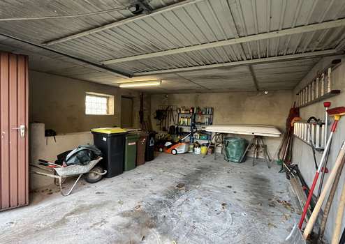 Die große Garage verfügt ebenfalls über einen Zugang zum Keller.