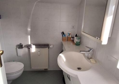 Die untere Wohnebene umfasst eine großzügige Wohnküche, ein großes Wohnzimmer, einen weitläufigen Flur sowie ein Badezimmer mit Toilette und Wanne. Die obere Ebene verfügt über zwei Schlafräume (hier wurden jüngst neue Dachfenster verbaut), ein zweites Badezimmer mit Toilette und Duschkabine sowie eine vollständig uneinsehbare Dachterrasse mit Ost-Ausrichtung und Weitblick. Ein kleiner Außenlagerraum sowie ein zusätzlicher Kellerraum ergänzen das Platzangebot.