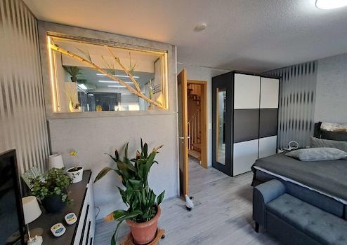 Ein wahres Raumwunder mit praktischer und komfortabler Raumaufteilung. Es beinhaltet auf 3 Etagen 4 Zimmer (davon 3 Schlafzimmer), 1 Badezimmer mit ebenerdiger Dusche, 1 Gäste-WC und einen weiteren Raum im trockenen Keller.