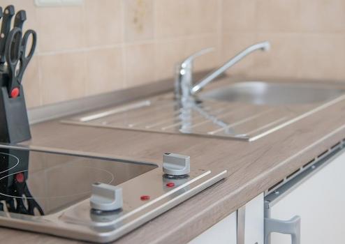 Die Küche wurde im März 2019 komplett neu erworben. Sie ist klein, praktisch und reicht für die täglichen Bedürfnisse mehr als aus. Es gibt genügend Stauraum, sodass Mieter einfach anfangen können zu kochen.