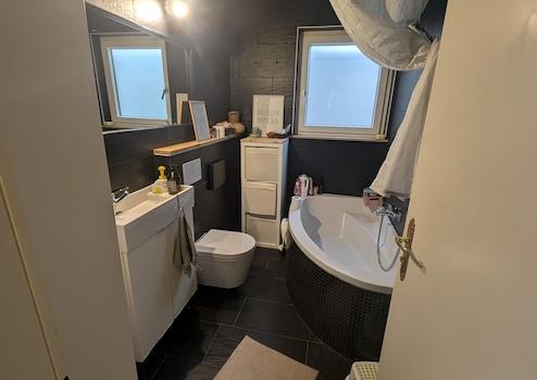 Das Bad ist zwar nicht riesig - verfügt aber über eine Badewanne. Die Toilette wurde 2025 erneuert.
