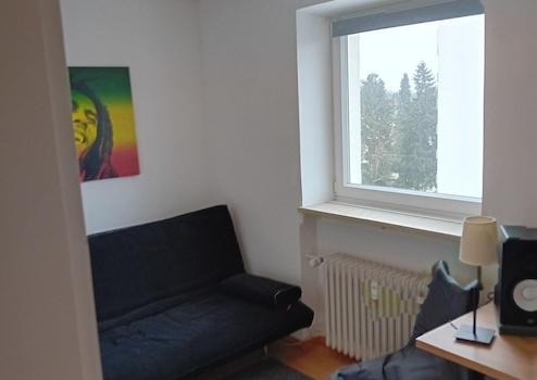 Die Wohnung befindet sich im 6. Stock eines achtstöckigen Gebäudes und verfügt über einen großen Balkon mit Blick nach Südosten und ist von beiden Zimmern aus zugängig. Dazugehörig ein Kellerabteil und ein einzeln verschließbarer Tiefgaragenplatz mit Schwingtor. Die Wohnung ist seit 2 Jahren an einen berufstätigen jungen Herrn vermietet, und befindet sich in einem gepflegten Zustand. Die Kaltmiete beträgt im Moment EUR 960 plus Garagenkaltmiete ca. EUR 70.