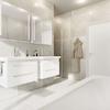Das Tageslichtbad ist hochwertig ausgestattet mit einer bodengleichen Dusche mit Glasabtrennung, einer Badewanne, einem Waschtisch mit Unterschrank sowie einem WC von Villeroy & Boch. Edle Armaturen von Grohe unterstreichen den gehobenen Anspruch. Die komplette Badausstattung ist im Miet-/Kaufpreis enthalten.