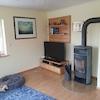 Im Wohnzimmer ist ein Ofen an den gemauerten Kamin angeschlossen, dieser wurde vor kurzem vom Schornsteinfeger für weitere Nutzung genehmigt. Der Ofen sorgt für gemütliche Atmosphäre und im Garten befindet sich gestapelt eine Menge Holz.