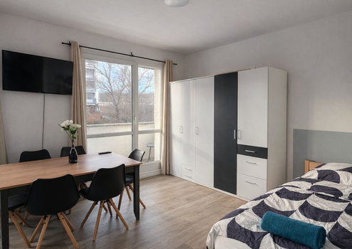 Die Wohnung wird vollmöbliert angeboten und ist sofort bezugsbereit. Die Möblierung ist funktional und auf eine flexible Nutzung ausgelegt.