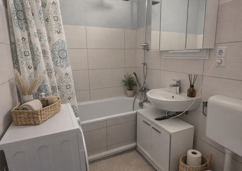 Das Badezimmer ist funktional ausgestattet und verfügt über [Badewanne/Dusche].