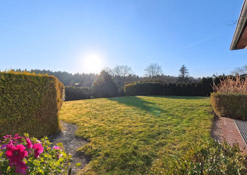 Ideale Voraussetzungen für entspanntes Leben im Grünen. Der unverbaubare Weitblick, das großzügige Grundstück mit eigener Waldfläche sowie die ruhige Lage schaffen einen besonderen Rückzugsort mit viel Raum für Alltag und Erholung.