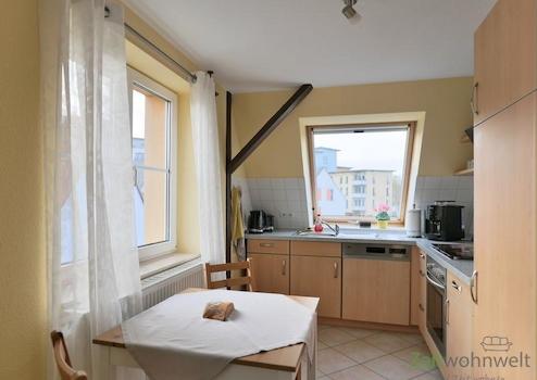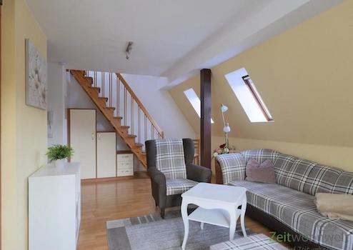 ### Please note the availability date! Bitte das Verfügbarkeitsdatum beachten! ### geschmackvoll möblierte Maissonette-Wohnung in DD-Breisnitz; WLAN und Waschmaschine vorhanden; unten: großes Wohnzimmer mit Sessel, Sofa und TV; offene Küche mit Esstisch am Wohnzimmer; Eingangsbereich mit Garderobe und Schränken; Bad mit Dusche, Wanne und WC; Innentreppe in den Spitzboden: Komode und Wandschränke; Schlafbereich mit großem Doppelbett; Pauschalmiete 890,00 Euro (bei 1 Person); Vermietung an max. 2 Personen; Kaution 1.200,00 Euro; einmalige Endreinigungspauschale 100,00 Euro; Mindestmietdauer 3 Monate; Pflichtangaben zum Energieausweis: Energieausweis gültig bis: 22.01.2031; Baujahr Gebäude: 1937; Energieausweis: nach Verbrauch; Energieverbrauch: 110.0 kWh/(m²a); Energieeffizienzklasse: D; Primärer Energieträger: Holzpllets
