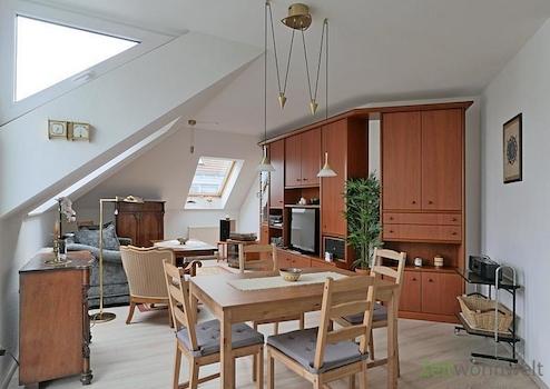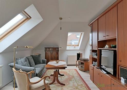 ### Please note the availability date! Bitte das Verfügbarkeitsdatum beachten! ### hübsches möbliertes Apartment im 3.Obergeschoss = Dachgeschoss, unweit zur Jenaer Innenstadt; helles Wohnzimmer mit Couch, Sesseln, ...