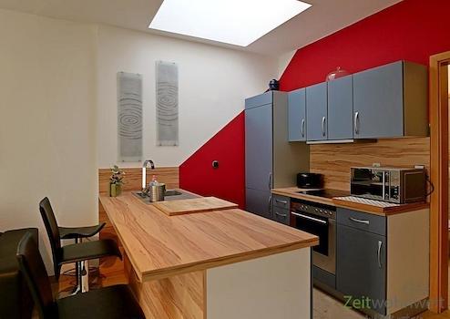 ### Please note the availability date! Bitte das Verfügbarkeitsdatum beachten! ### hübsches möbliertes Apartment im 3.Obergeschoss = Dachgeschoss, unweit zur Jenaer Innenstadt; helles Wohnzimmer mit Couch, Sesseln, ...