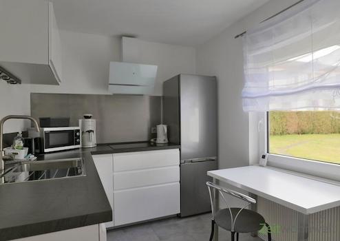 ### Please note the availability date! Bitte das Verfügbarkeitsdatum beachten! ### kleiner möblierter massiver Bungalow im Garten hinter dem Wohnhaus; Wintergarten mit Sichtschutz, Sitzecke und TV; Wohnzimmer mit Sofa, TV und Esstisch; Schlafzimmer mit breitem Bett, Kleiderschrank und Kommode; kleine Küche mit kompletter EBK und kleinem Esstisch, WLAN vorhanden; Bad mit Dusche, Wanne, Waschmaschine und WC; Terrasse am Gebäude (kein Foto); die angegebene Miete von 985,00 Euro (bei 1 Person) setzt sich zusammen aus Pauschalmiete 885,00 Euro zzgl. NK-Vorauszahlung 100,00 Euro für Strom und Wasser, Kaution 1.200,00 Euro; Endreinigung Mietersache; Mindestmietdauer 3 Monate; Pflichtangaben zum Energieausweis: Entfällt, Gebäude mit nicht mehr als 50 Quadratmetern (§16 Absatz 5 EnEV 2014 bzw. §2 EnEV 2014)
