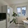 ### Please note the availability date! Bitte das Verfügbarkeitsdatum beachten! ### hübsches möbliertes Apartment im 3.Obergeschoss = Dachgeschoss, unweit zur Jenaer Innenstadt; helles Wohnzimmer mit Couch, Sesseln, ...