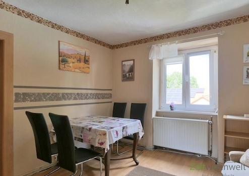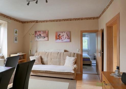 ### Please note the availability date! Bitte das Verfügbarkeitsdatum beachten! ### höbsche möblierte Wohnung in ruhiger Wohnlage in Waldkappel; WLAN; großes Wohnzimmer mit modernen rustikalen Möbeln, Sofa, Esstisch, ...