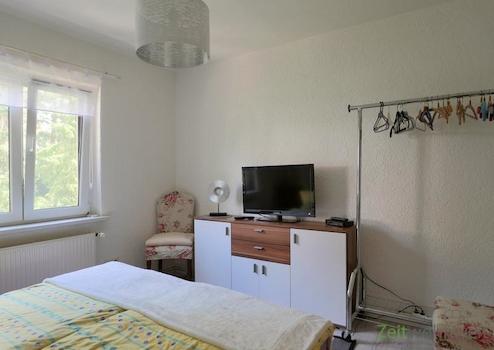 ### Please note the availability date! Bitte das Verfügbarkeitsdatum beachten! ### möblierte Wohnung in KS-Harleshausen; ruhige grüne Nebenstraße; WLAN inklusive; großes Wohnzimmer mit XL-Wohnlandschaft, rundem ...