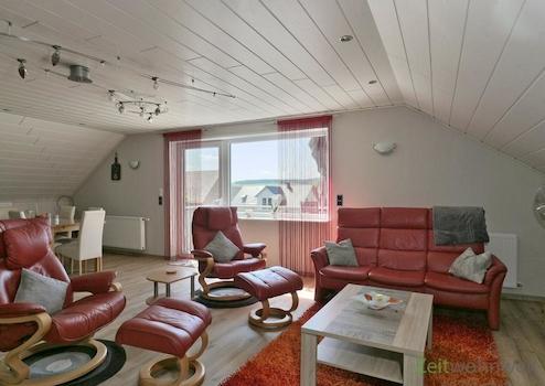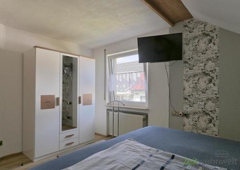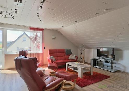 ### Please note the availability date! Bitte das Verfügbarkeitsdatum beachten! ### höbsche möblierte Wohnung in ruhiger Wohnlage in Waldkappel; WLAN; großes Wohnzimmer mit modernen rustikalen Möbeln, Sofa, Esstisch, ...