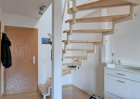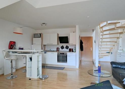 ### Please note the availability date! Bitte das Verfügbarkeitsdatum beachten! ### neu und allergikergerecht möbliertes 2-Zimmer-Maisonette-Apartment, ruhige, zentrumsnahe Lage direkt an einem Seitenarm der Gera; 4. Obergeschoss mit Aufzug, WLAN inkl.; großes Wohnzimmer mit Sofa, Sessel; kleinem Schreibtisch (mit Monitor!) runder Esstisch; TV; offener Küchenbereich mit EBK und Tresen-Esstisch mit Barhocker; Bad mit Wanne WC und Waschmaschine; Innentreppe ins Dachgeschoss; Schlafzimmer mit Boxspringbett, Koffer-Kommode und verdunkelbaren Dachfenstern: ein Kleiderschrank und Spiegel sind im oberen Flur; Pauschalmiete 1.150,00 Euro (bei max. 1 Person); Kaution 2.000,00 Euro; Fahrradverleih nach Absprache möglich; Mindestmietdauer 3 Monate; Endreinigung Mietersache; Pflichtangaben zum Energieausweis: Energieausweis gültig bis: 23.02.2030; Baujahr Gebäude: 1918; Energieausweis: nach Verbrauch; Energieverbrauch: 112.0 kWh/(m²a); Energieeffizienzklasse: D; Primärer Energieträger: L-Gas/Leichtes Erdgas