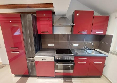 Wohnzimmer, Schlafzimmer Eltern, Kinderzimmer oder Büro, Essküche incl. EBK gegen Gebühr (60 € monatlich),Bad mit Wanne und Dusche, extra Toilette, sehr große Dachbühne (Maisonette) mit Fenstern und grandioser Aussicht, riesen Balkon -ebenfalls mit Traumaussicht.