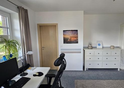 Am Schlafzimmer schließt sich ein praktisches Ankleidezimmer an. Welches auch als Büro genutzt werden kann.