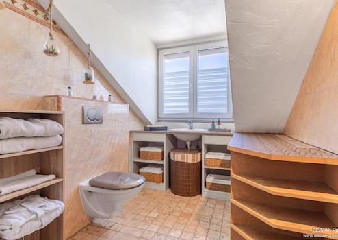 Dieses befindet sich aktuell im Rohbauzustand, da es bereits für den Einbau einer Fußbodenheizung vorbereitet wurde. Damit haben Sie die Möglichkeit, Ihr Traumbad nach eigenen Vorstellungen zu gestalten.