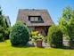 Zum Haus gehören ein Keller sowie ein großer Garten. Der Garten wirkt weitläufig und bietet viel Rasenfläche, gewachsene Bepflanzung und mehrere Bereiche zum Sitzen. Eine Terrasse ist vorhanden, ebenso ein gemauerter Grillkamin, der sich für unkomplizierte Abende im Freien anbietet. Insgesamt bietet das Grundstück viel Raum für Spiel, Gartenarbeit oder einfach Ruhe im Grünen.
