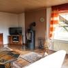 Wir betreten das Haus über den Eingangsbereich. Von hier aus erschließen sich die Räume des Erdgeschosses auf kurzen Wegen. Das Wohnzimmer im Erdgeschoss ist großzügig geschnitten und durch die großen Fenster angenehm hell. Der Raum lässt sich gut in Wohn und Essbereich gliedern, ohne dass es gedrängt wirkt. Ein Kaminofen ist vorhanden und ergänzt das Wohngefühl besonders in der kühleren Jahreszeit.