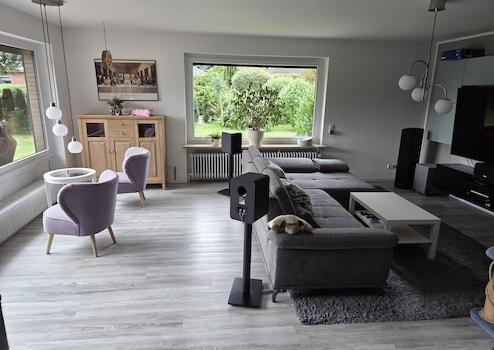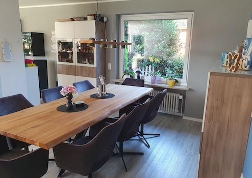 Es handelt sich bei diesem Objekt um ein modernisiertes Einfamilienhaus, das Platz für eine große Familie bietet. Zu dem Objekt zählen neben sechs frei verwendbaren attraktiven Zimmern und einem großen Wohn-/Essbereich mit offener Küche ebenfalls ein separater Waschraum, zwei Abstellräume sowie eine einladende Sitzecke im geräumigen Flur des Obergeschosses.