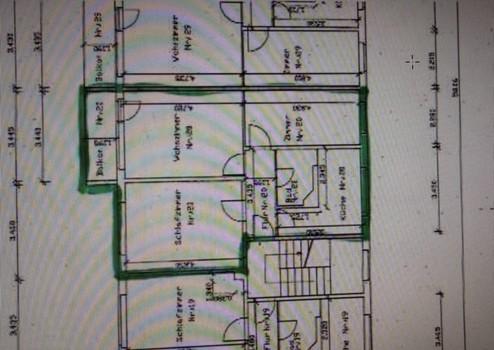 DIE HELLE WOHUNG (OBERSTE 5. ETAGE OHNE FAHRSTUHL) BESTEHT AUS DREI ZIMMERN, BAD/WC/WASCHM.ANSCHLUSS, KÜCHE MIT EINBAUKÜCHE, FLUR, BALKON (BLICK INS GRÜNE) UND KELLER.