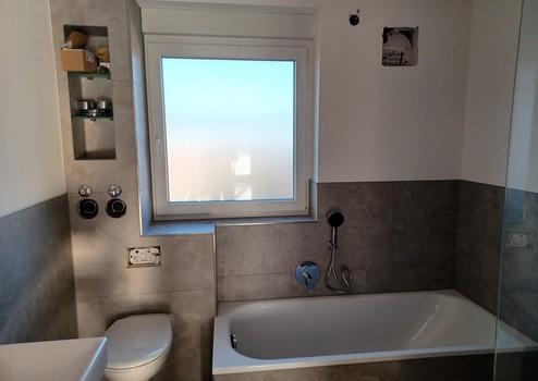 - Badezimmer mit Dusche, Badewanne und WC
