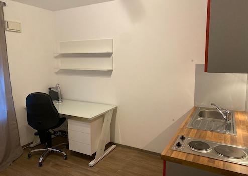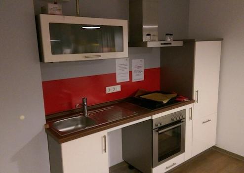 - Teeküche mit Einbauspüle, Unterbaukühlschrank, 2 Kochfeldern