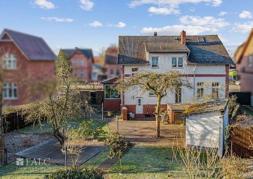 Dieses Mehrfamilienhaus aus dem Baujahr 1902 bietet insgesamt ca. 218 m² Wohnfläche und ist in zwei Wohneinheiten aufgeteilt. Der Rundgang beginnt im Erdgeschoss im Windfang, der bereits einen schönen Blick in den Garten freigibt und als praktische Pufferzone für Jacken und Schuhe dient. Von hier geht es in die zentrale Diele, von der aus die Räume gut erreichbar sind.