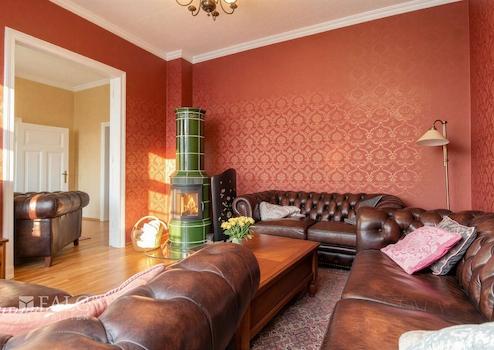 Über das weitläufige Treppenhaus erreichen Sie das Dachgeschoss. Hier stehen drei Schlafzimmer zur Verfügung, eines davon als Gästezimmer mit eigenem WC. Zwei weitere modern gestaltete Badezimmer bieten mit Dusche bzw. Badewanne und Tageslicht eine komfortable Ergänzung und der Wohnraum inklusive Kamin lässt auch hier keine Wünsche offen.