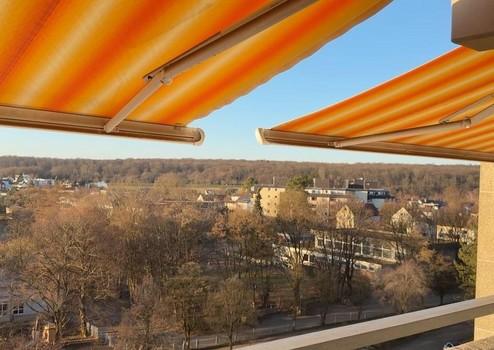 Großer Balkon über die gesamte Wohnungsbreite mit elektrischer Markise