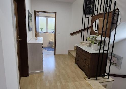 Auf drei Wohnetagen hat eine große Familie Platz, oder das, als Wohnung ausgebaute, Obergeschoss kann für Homeoffice bzw. Bürofläche dienen. Auf rund 180 m² Wohnfläche verteilt auf 3 Wohnetagen und einer Grundstücksgröße von ca. 331 m² bietet dieses Haus großzügige sechs Zimmer, darunter vier Schlafzimmer und zwei Bäder.