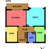 •Wohnen/Essen (mit Wanddurchbruch zu einem großen Raum verbunden)