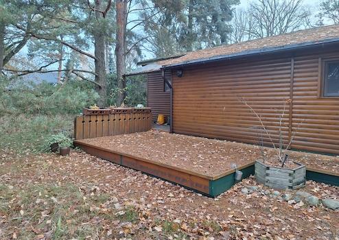 Der Hauptbungalow aus den 1980iger Jahren hat eine Größe von circa 27 m² und ist aufgeteilt in einen Wohnbereich, eine Küche und ein geräumiges Schlafzimmer von dem aus man das Duschbad erreicht. Um den Bungalow herum, verläuft eine Terrasse die Sie durch die waldreiche Lage auch gut an heißen Tagen als Erholungsort nutzen können.
