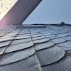 Der überwiegende Teil des Objektes wurde massiv mit Betonsteinen und Betondecken errichtet. Der Dachstuhl und die Eindeckung mit Naturschiefer stammen offensichtlich noch vom vorherigen Bauwerk und sind in gutem Zustand. Die Gaube zur Straße hin ist mit Bitumen belegt.