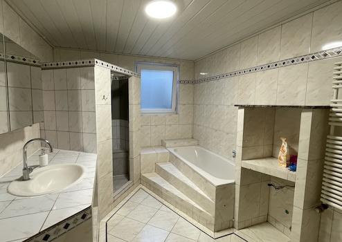 - geräumiges Dusch- u. Wannenbad im Souterrain (ca. 1991 /Vorwandelement + WC ca. 2021)