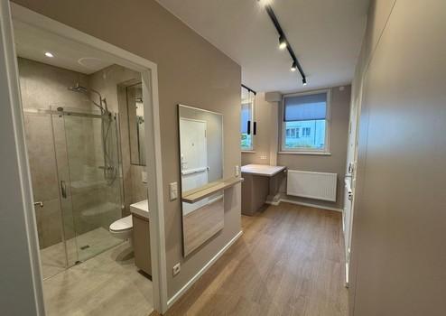 Das hochwertige Badezimmer bietet eine großzügige Walk-In-Dusche mit moderner Glasarchitektur und vermittelt ein exklusives, spa-ähnliches Ambiente. Ein separates, maßgefertigtes Ankleidezimmer sorgt für optimalen Stauraum und zusätzlichen Komfort im Alltag.