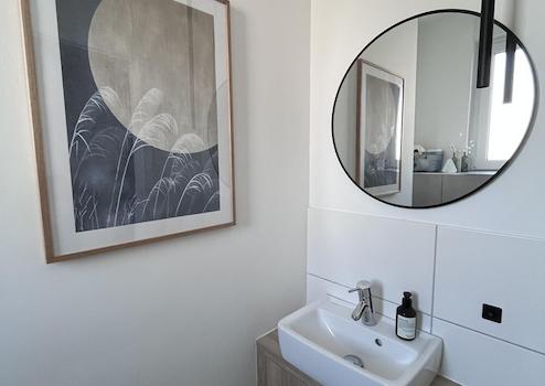 -Waschbeckenunterschränke (vom Schreiner) in Bad und Gäste-WC