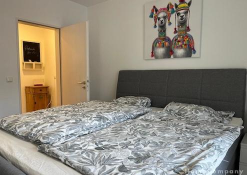 Modern möbliertes Apartment mit grozügigem Wohn/Schlafbereich, möbliert mit Doppelbett, Kleiderschrank und Essbereich. Bad mit Fenster und Badewanne. Separate, voll ausgestatte Küche.