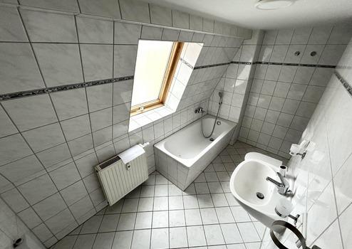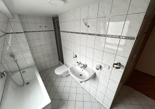 - Badezimmer mit Wanne, Dusche und Waschmaschinenanschluss