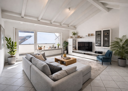 Diese gepflegte 3-Zimmer-Dachgeschosswohnung (ca. 58 m²) überzeugt durch eine Kombination, die in Böblingen selten ist: Zentrumsnähe und gleichzeitig ein Wohngefühl mit viel Licht, großen Fenstern und hohen Decken. Der großzügige Wohnbereich wirkt offen und einladend; die große Süd-Loggia erweitert den Wohnraum ideal – perfekt für entspannte Abende.