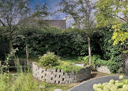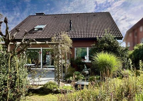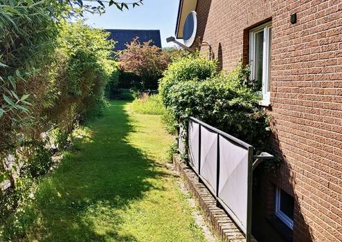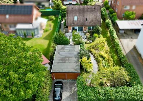 Das gut zugeschnittene und mit einem Stabmattenzaun eingefriedete Grundstück ist so angelegt, dass die Terrasse und der größte Teil des pflegeleichten Gartens Richtung Westen ausgerichtet ist. Die Doppelgarage ist mit elektronischen Sektionaltoren und einem Geräteraum ausgestattet.