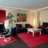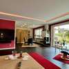 Das ca. 46 m² große Wohn-/Esszimmer liegt direkt an der Westterrasse, die durch eine große Schwebetür zu erreichen ist. Die abgehangene Decke hat eine indirekte Beleuchtung, die für eine gemütliche Atmosphäre sorgt.