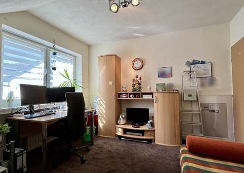 Der überwiegend beheizte Keller hat eine angenehme Deckenhöhe von ca. 2,25 Metern mit indirekter Beleuchtung und ist bis auf den Schlafraum und den Lagerkellerraum durchgehend gefliest. Die Türen sind modern in weiß gehalten. Das mit Teppich ausgelegte Schlafzimmer mit ca. 25 m² Metern hat ein ausreichend großes Fenster zur Belüftung und liefert viel Tageslicht in den Schlafraum.