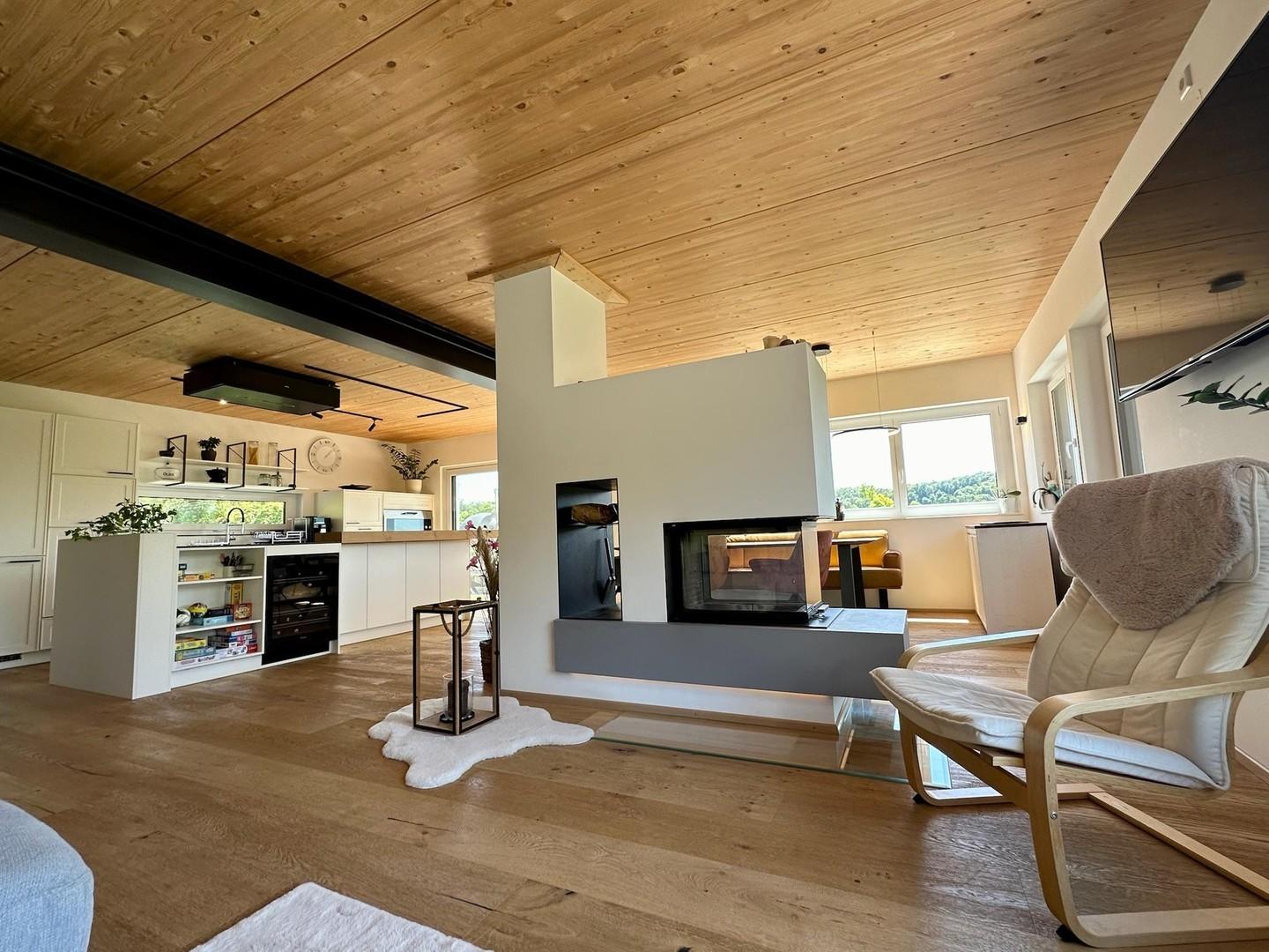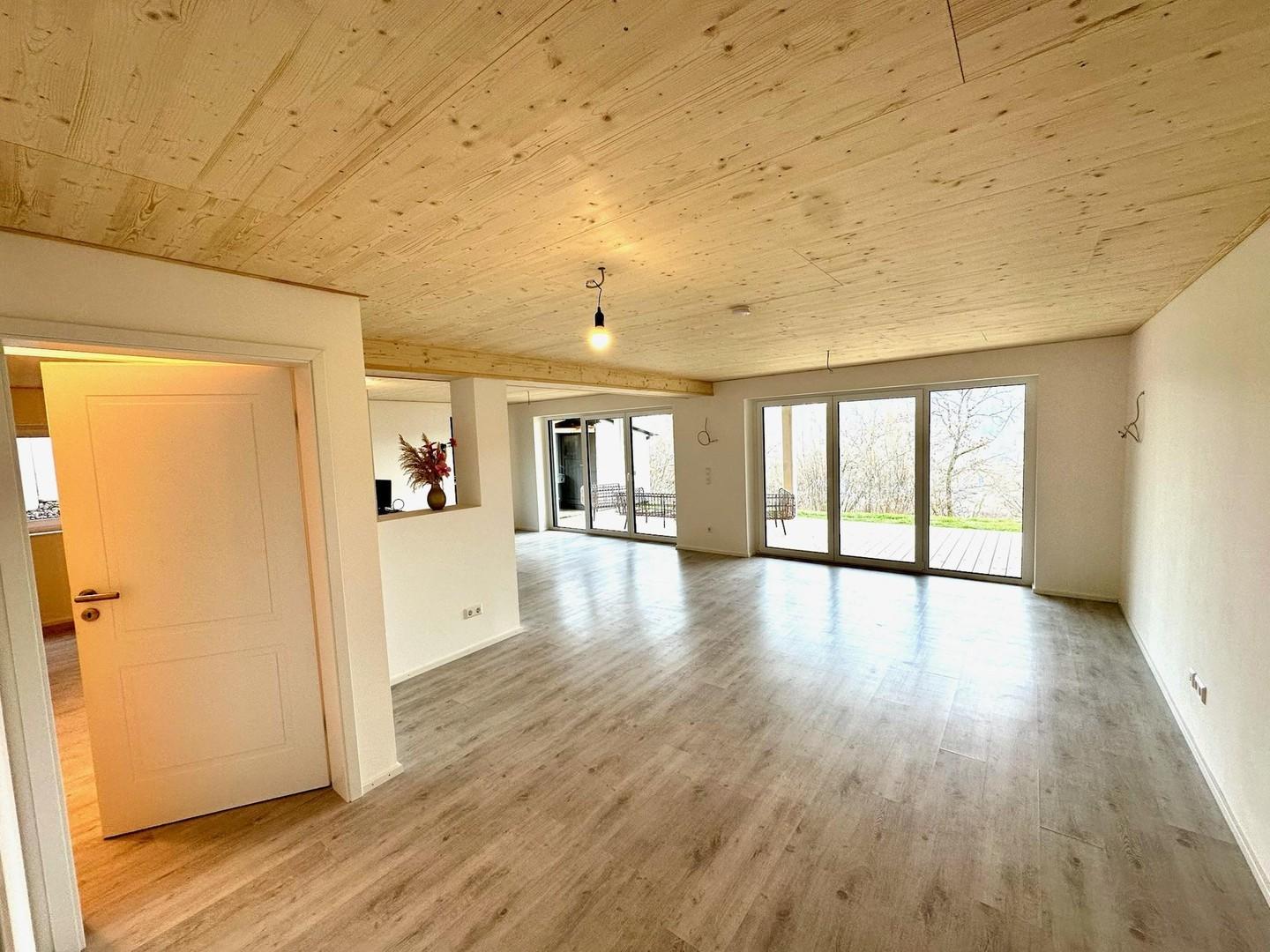 2,5 Zimmer Wohnung, großer Wohn- und Kochbereich, Bad und Gäste-WC, Grünanlage hinter dem Haus