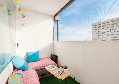 Vom Wohnbereich aus gelangt man auf den ostseitig ausgerichteten Balkon – ideal, um die Morgensonne zu genießen. Die Lage in den oberen Etagen sorgt für einen offenen Blick über das Umfeld.