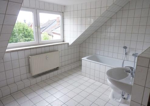 Unsere große Dachgeschosswohnung bietet mehr als genug Platz für Sie und Ihre Liebsten. Diese einzigartige Dachgeschosswohnung beeindruckt durch ein offenes Konzept. Der Wohnbereich mit offener Küche schafft eine großzügige, einladende Atmosphäre. Die moderne Wohnküche ist nicht nur funktional, sondern auch der zentrale Treffpunkt für gemütliche Abende mit Freunden oder der Familie. Das Badezimmer ist mit einer Wanne ausgestattet und verfügt über ein Fenster, das für natürliches Tageslicht und Frische sorgt. Alle Räume sind gleichmäßig geschnitten und hell.